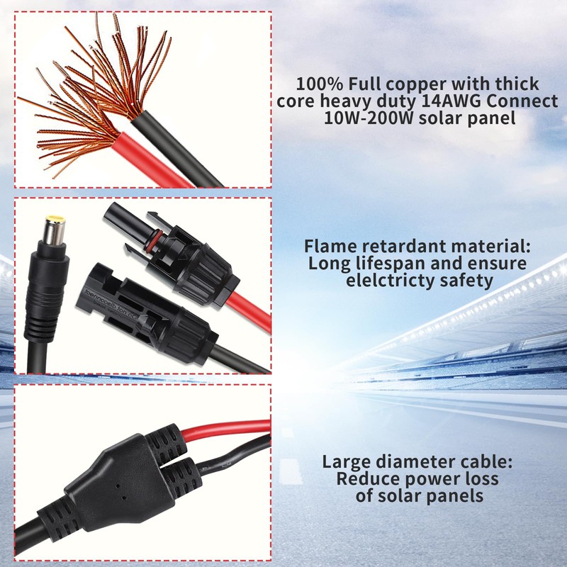 - High-Quality Build: Features a durable 12AWG cable with a length of 6ft (1.8m), providing efficient power transfer and flexibility for optimal solar panel placement