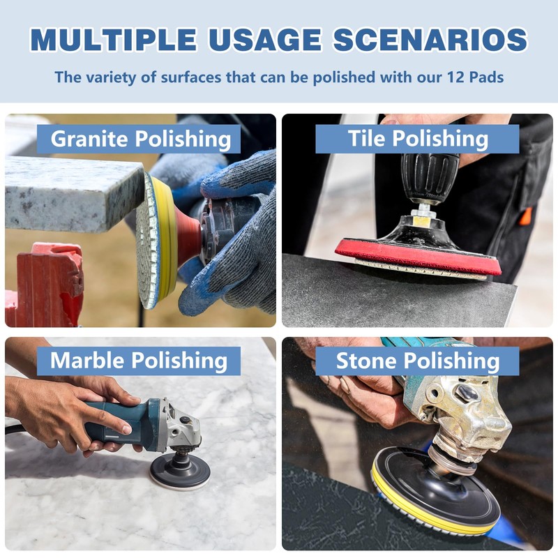 HO-ARYZ 4 Inch Diamond Polishing Pads 13PCS Wet/Dry Polish Pad Kit for Drill Grinder Polisher 50-6000 Grit Pads for Granite Marble Concrete Stone Countertop Quartz Polishing