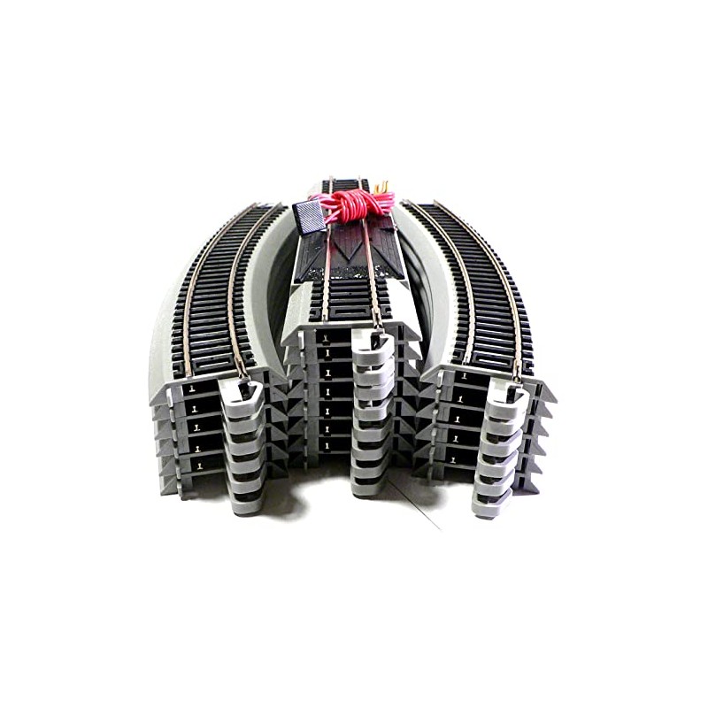 Whether for your first train set or for more advanced layouts Bachmann HO Scale E-Z Track makes setting up easy. Each section combines track and roadbed into a single piece, with snap-fit assembly and plug-in wiring to provide instant railroad fun. A hidden locking feature holds sections securely together until you're ready to take them apart. Easy to set up on any surface, including floors and rugs, no special tools, nails or boards are needed. Steel-alloy rail is easy to keep clean and corrosion free with normal indoor use. As reference, 12 sections of curved 18" radius track make a full circle; 16 sections of curved 22" radius track make a full circle.