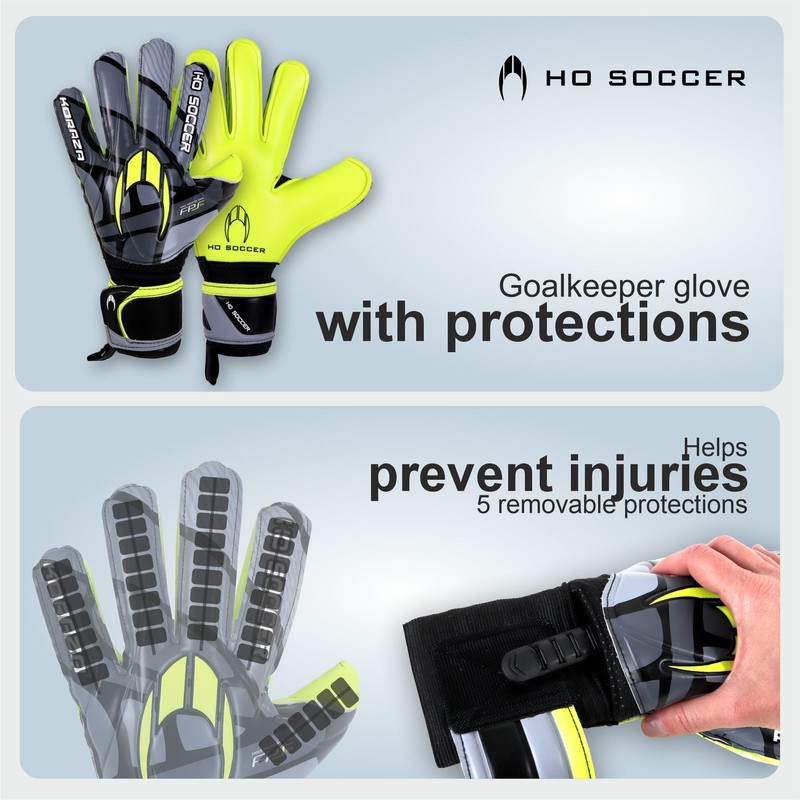 HO Soccer KORAZA Unisex Adult Lime Goalkeeper Gloves, Grey/Lime, Size 10