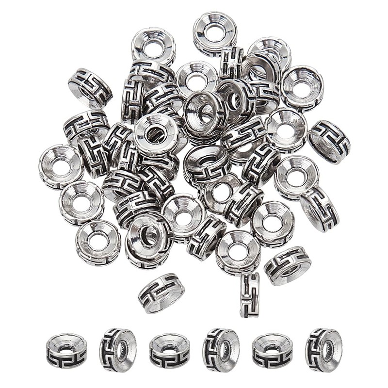 HOBBIESAY 50 Pcs Tibetan Spacer Beads Flat Round Metal Spacer Beads 7.5mm Retro Style Loose Connector Spacer Beads Antique Silver for Bracelet Necklace Jewelry Making DIY Crafts Hole:2.5-3mm