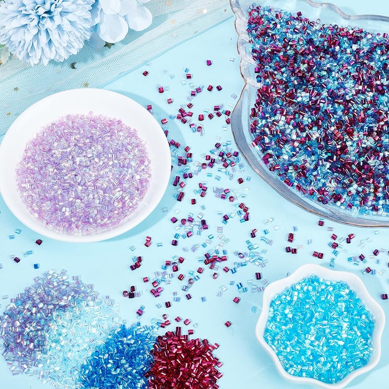 HOBBIESAY 8 Colours Approx. 8464 Pieces Crispy Bingsu Beads 3D Glitter Plastic Beads 3mm Blue Purple Iridescent Soft Tube Beads For The Range Crispy Micro Beads