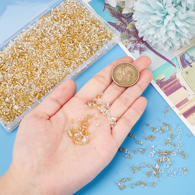 HOBBIESAY Approx. 4140 pieces glass beads in 3 sizes 2-4 mm gold and silver b...