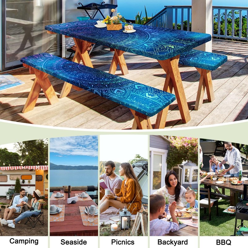 - Picnic Table and Bench Covers: This camping gear set includes 1pc picnic tablecloth (fitting 72" x 30" table) and 2pcs bench covers (fitting 72" x 12" benches), fit for rectangle tables and seats. This picnic table cloth is perfect for RV camping, picnics, barbecues, backyard cook out, and other outdoor activities.