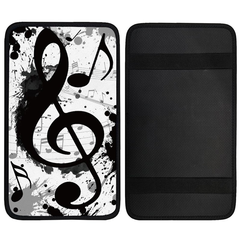 Hobbspring 1pc Center Console Armrest Cover Pad 32x19cm Music Note Neoprene Car Armrest Cushion Waterproof Armrests Seat Box Cover Protector for Universal Cars Vehicles SUVs
