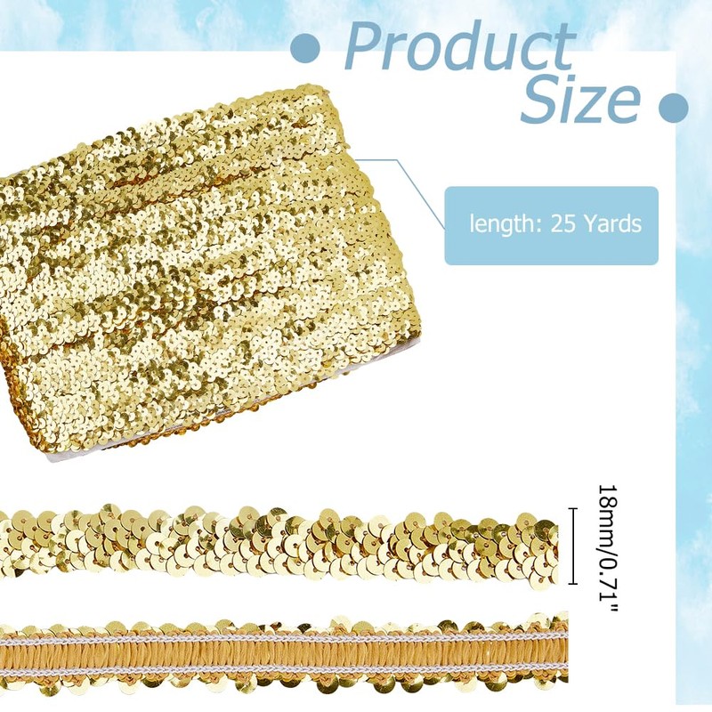 - Size: The sequin strip is about 25 yards long, 18 mm wide. Free to cut and then sew or glue to your craft to meet your daily needs.