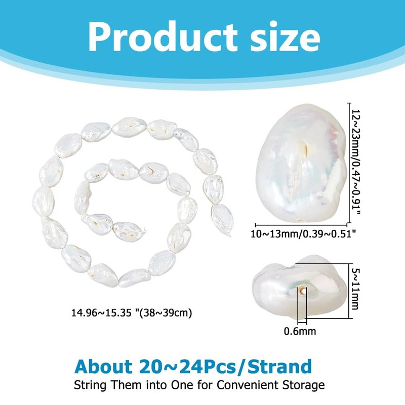 - What You'll Get:1 strand with 20-24 pearls; Sizes range from 12-23mm long (that's about 0.47-0.91 inches);Each pearl has a small 0.6mm hole ready for stringing.