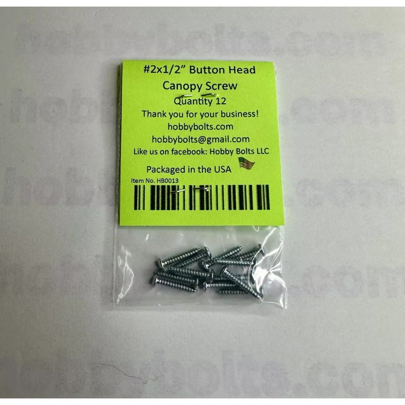 Hobby Bolts #2x1/2 Button Head Canopy Screw QTY:2 pack of 12 RC Micro Fasteners