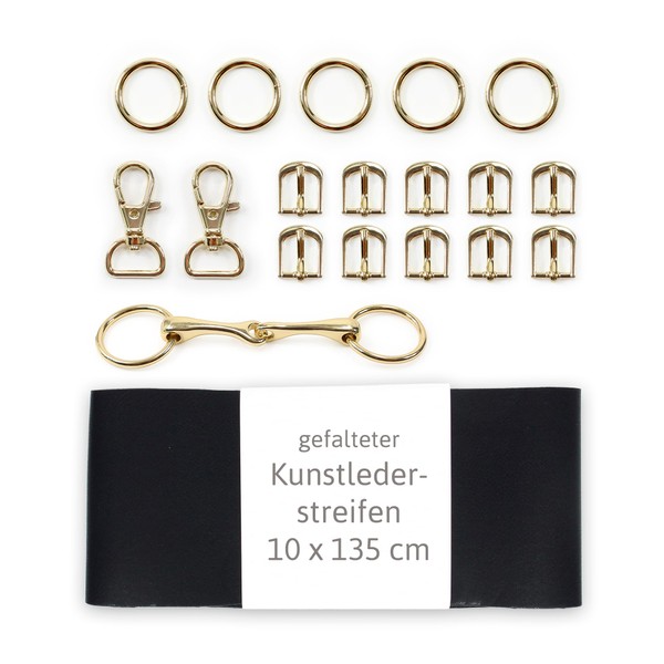 - To attach the buckles and straps, you can use glue or alternatively rivets (not included in the set), sewing is also conceivable