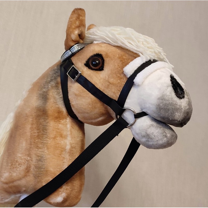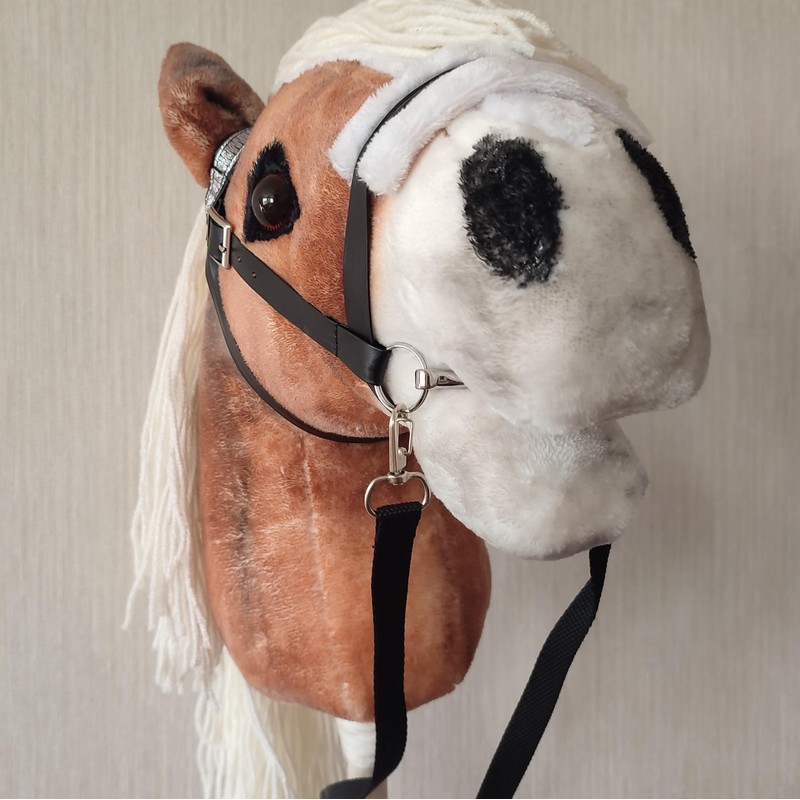 - Realistic stick hobby horse with bridle for older children (from 4 years).