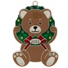- DECORATIVE DETAILS: Features a brown teddy bear design with cream-colored paws, green wreath accent, and multicolored holiday elements