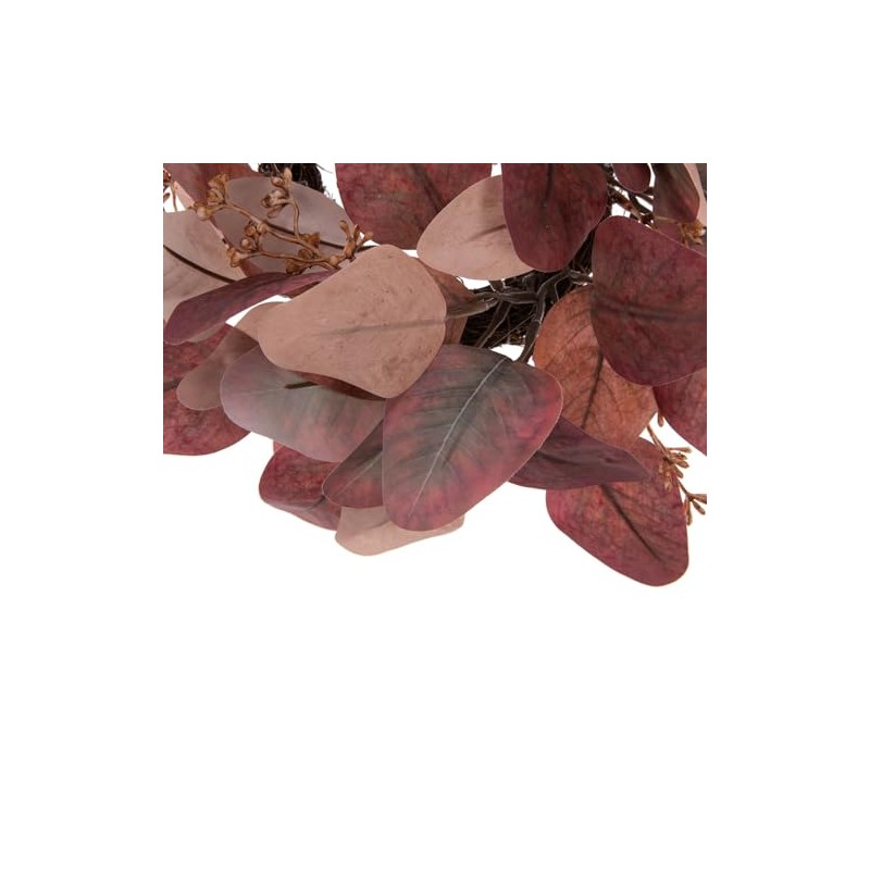 Decorate your home this fall season with a charming Eucalyptus Mini Wreath! This wreath features a beautiful assortment of faux eucalyptus leaves and white seed decorations. Add a rustic touch to your living room with this homey piece.