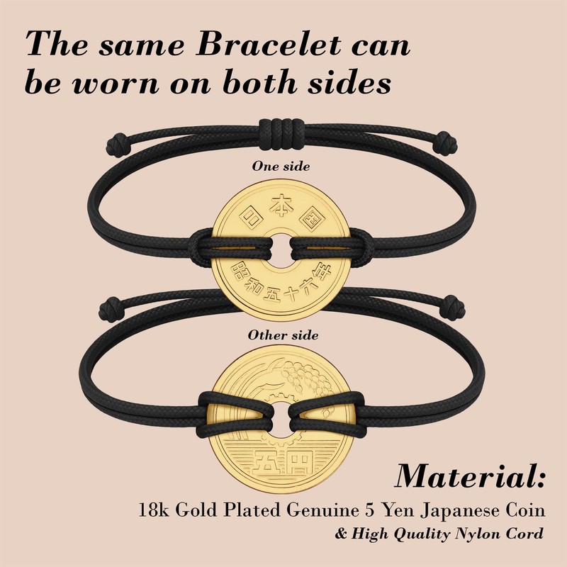 - Authentic Japanese Coin – Features a genuine 5 Yen coin from Japan, 18k gold plated for a luxurious shine, symbolizing prosperity, fortune, and protection. Known as the "go-en" coin, it represents honorable success and meaningful connections. Available in classic black braided cord.