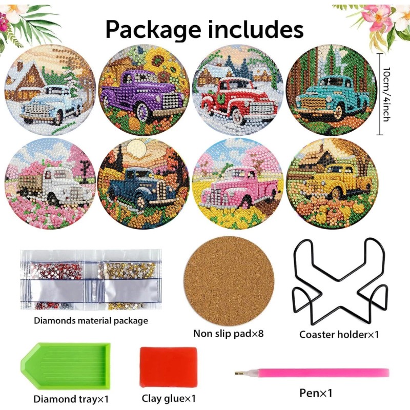 HobbyCraftTime 8 Pcs Diamond Art Coasters Kits - All Season Diamond Painting ...