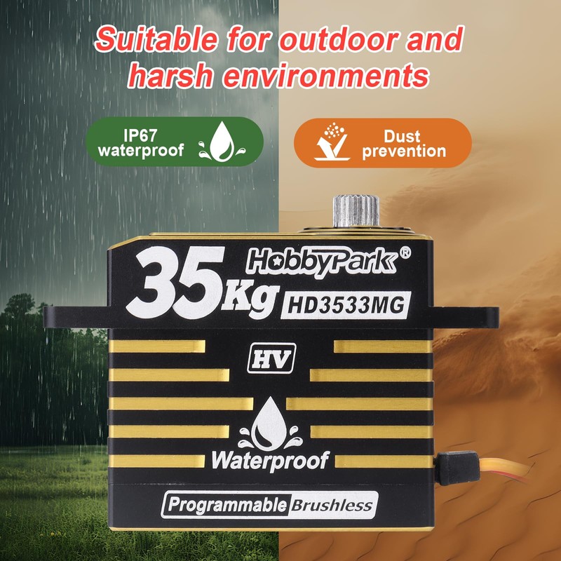 - Waterproof Design for All-Weather Performance- Built to withstand water, mud, and dust, this waterproof servo ensures reliable operation in any environment, making it suitable for extreme outdoor adventures and tough conditions.