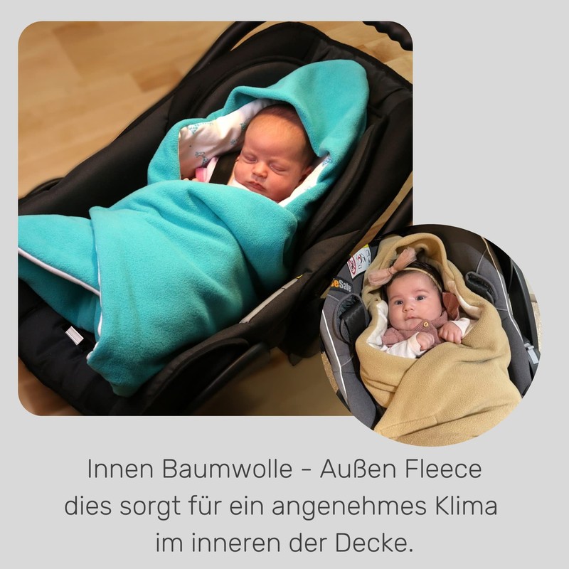 - Blanket for baby seat, pram, pram or car seat. The blanket can be used as a play mat or changing mat. Size: 70 x 70 cm. Suitable for babies up to approx. 6 months.