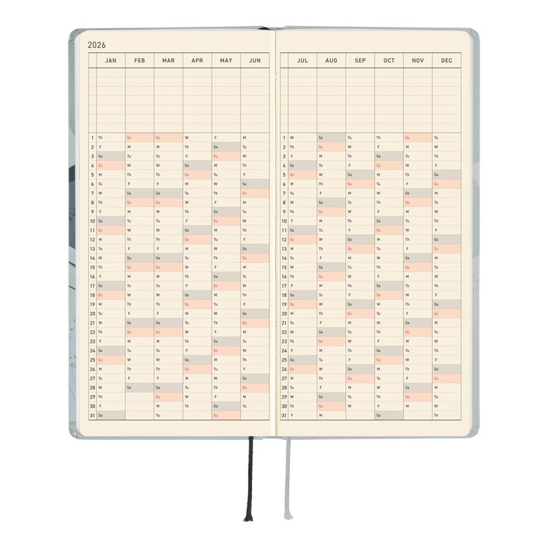 - 240 pages; English. Made with Tomoe River paper and stitch-binding. 3.55mm graph paper; Monday-start week. Size: H188 × W94 × T11 mm / H: 7.4" × W: 3.7" × T: 0.4" (specifications may vary slightly) | Weight: approx.140g