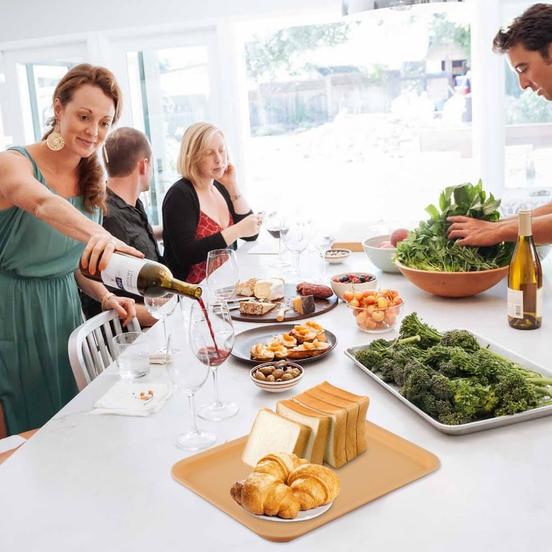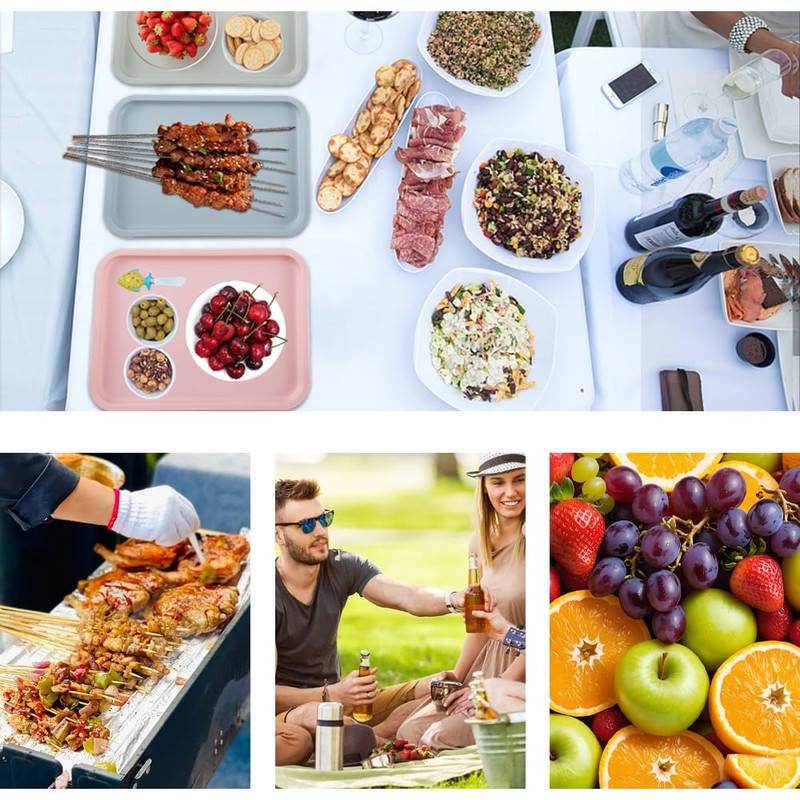 • Das rechteckig tablett ist perfekt für küche, restaurant, café, bankett, party, camping und andere orte. Das tablett kann früchte, desserts, kuchen, süßigkeiten, säfte, kaffee und tee, etc. enthalten