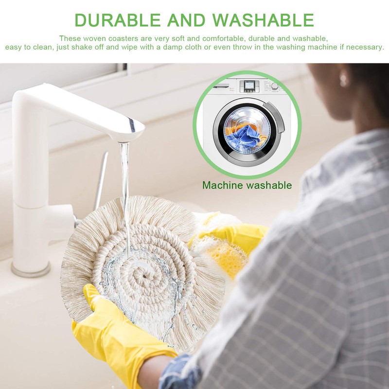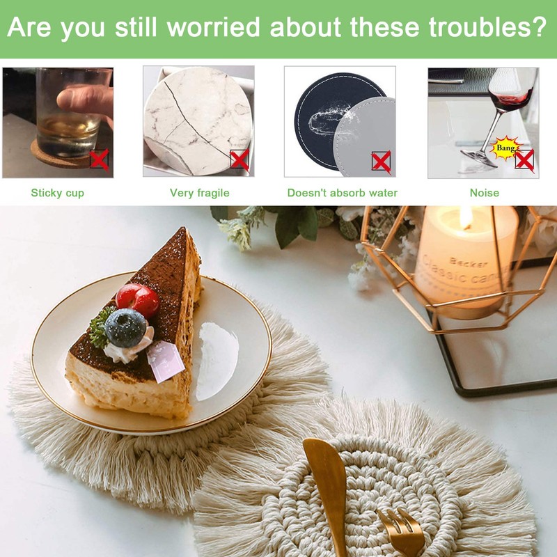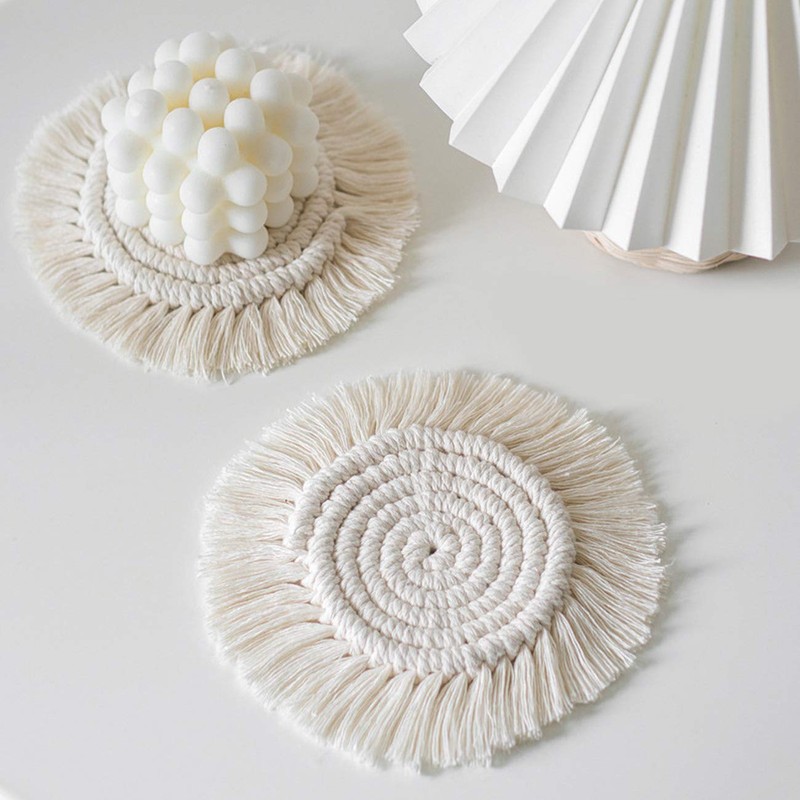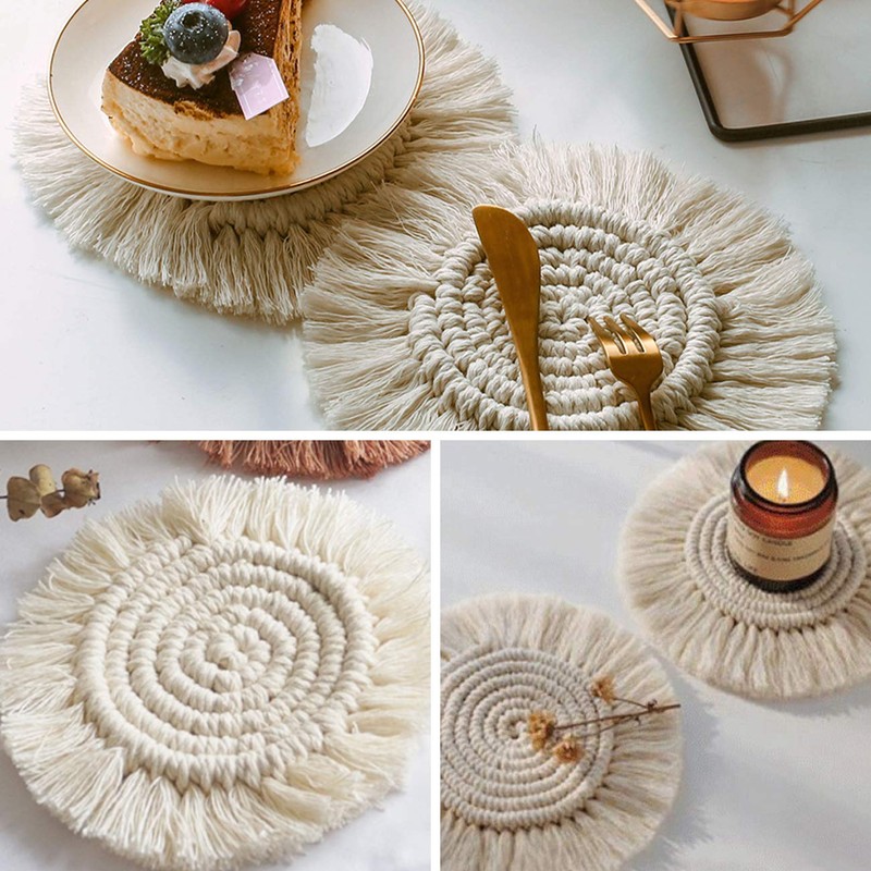 - Handmade macrame coaster is the best environmentally friendly, stylish and practical coaster on your table and your counter. Protect the surface of the table top from scratches, water stains, heat stains and reduce the noise of cups and cutlery.