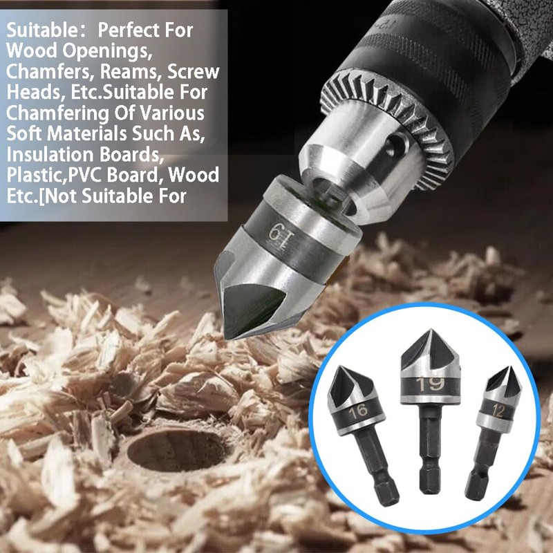 - Quality: Countersink drill hexagon 5 flutes woodworking chamfer drilling tool countersink for countersink wood