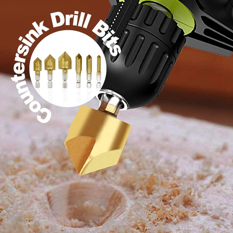 Hocansen 6-Piece Drill Bit with Countersink Hexagonal 5 Flutes Countersink Dr...