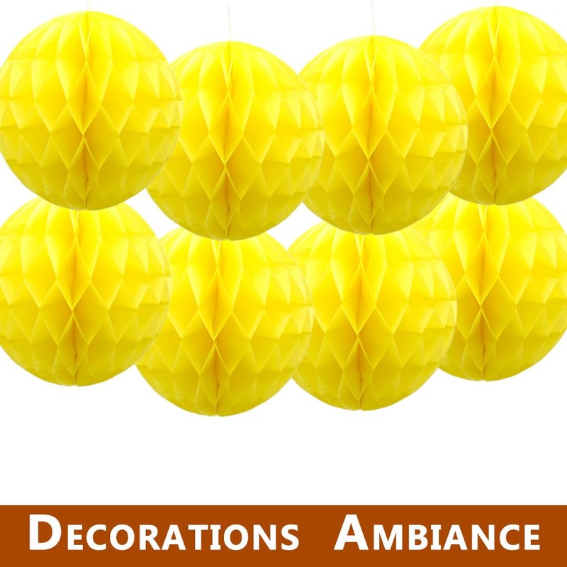 Hocansen 8 PCS Paper Honeycomb Balls Decoration 8inch Honeycomb Flower Balls Party Decoration Tissue Pom Poms Ball Hanging Flower Balls for Wedding, BirthdayHome Decor (FWQ/Yellow)