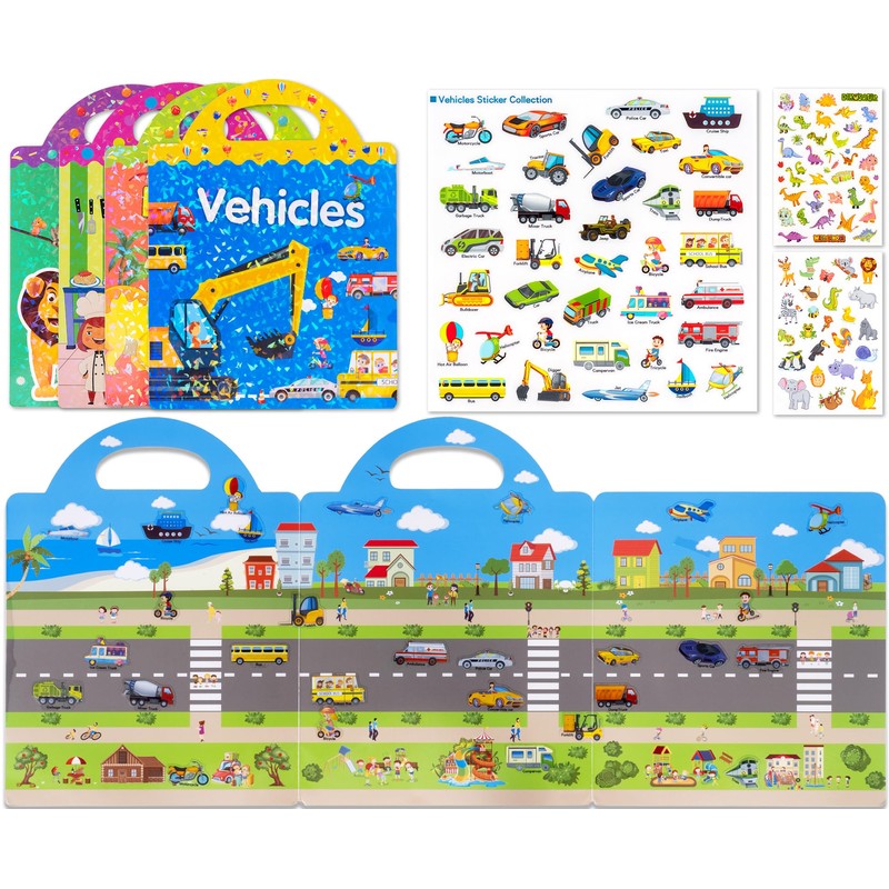 - 【Portable Stickers Book】 These sticker books feature a convenient handle and offer both fun and educational benefits at home or on the go. Designed to engage children creatively, they provide a hands-on activity that helps reduce screen time on devices like iPads and phones, promoting healthier habits. Additionally, the engaging nature of the stickers fosters your child's imagination and aids in the development of their concentration skills.