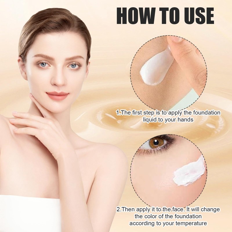 - 【Lightweight and Breathable】Skin temperature changing liquid foundation is lightweight and comfortable to wear, leaving your skin feeling fresh and breathable all day long. Colour changing foundation for mature skin conceals skin imperfections, fine lines and wrinkles, preventing makeup from cracking or caking, allowing your skin to naturally reveal and glow