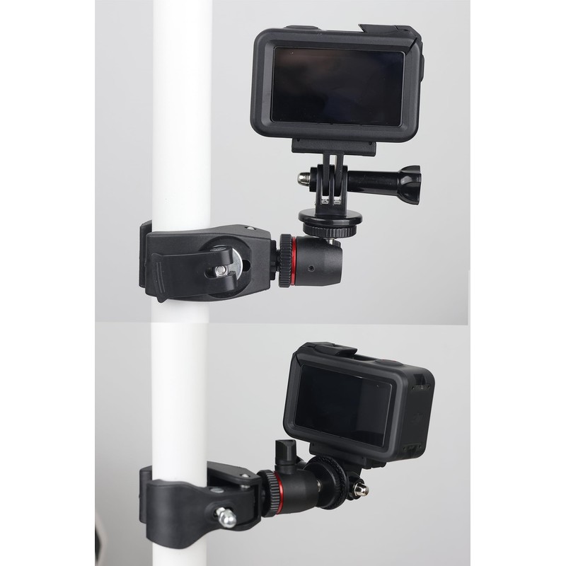 - FUNCTIONAL CAMERA MOUNT: It's made of clamp and action camera mount. Easily compatible with almost of action camera. And you can just use the clamp to fit the camera, lights or else device;