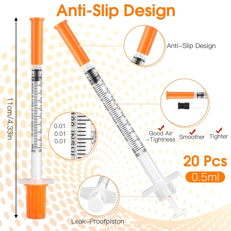HOCUCHELAND 20 Pack 0.5ml Plastic Dispensing Measuring Tool, Individually Wrapped, 31G 8mm, Ultra Fine Lab Dispensers, Multiple Uses Laboratory Accessories for PET Feeding Liquid Separation Lab Measuring Supplies