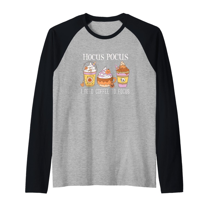 Hocus Pocus I Need Coffee To Focus Fall Vibes Autumn Raglan Baseball Tee