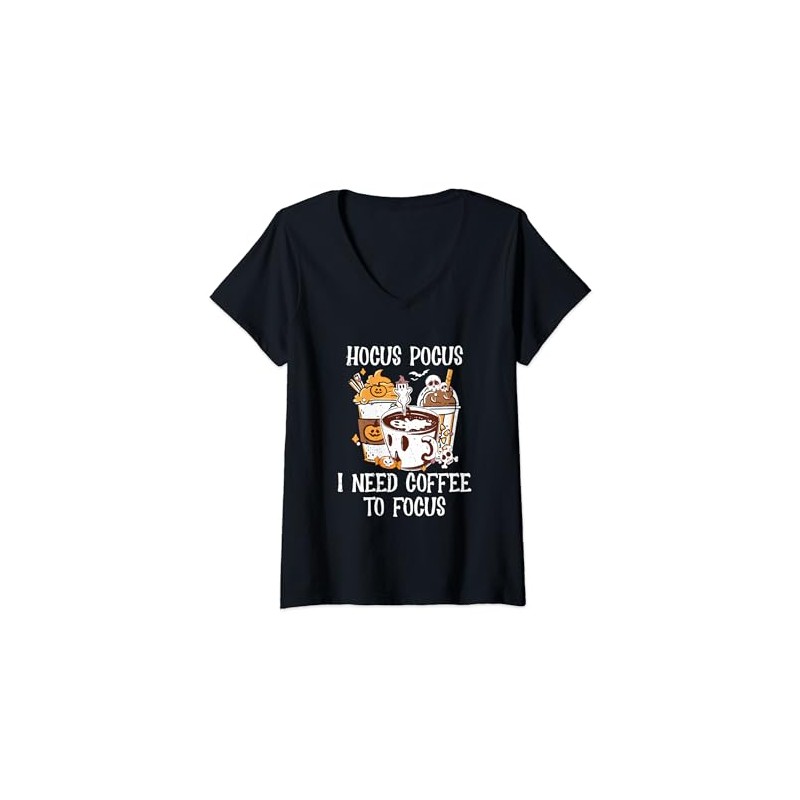 Hocus Pocus I Need Coffee to Focus Retro costume V-Neck T-Shirt