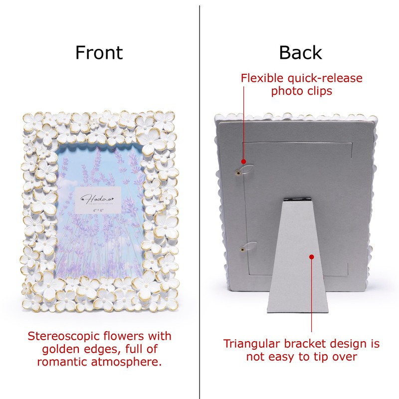 - 【Four Styles to Suit Any Vibe】 Choose from four 4x6 designs to personalize your space: Square White with Gold Trim:Modern elegance for living rooms or offices. Square Pink Floral:Soft romance for bedrooms or vanity tables. Heart - Shaped White with Gold Trim:Timeless love - inspired design for anniversaries or wedding decor. Heart - Shaped Pink:Sweet charm perfect for Valentine’s Day or romantic nooks. All feature hand - carved 3D flowers and durable resin—no boring flat frames here!