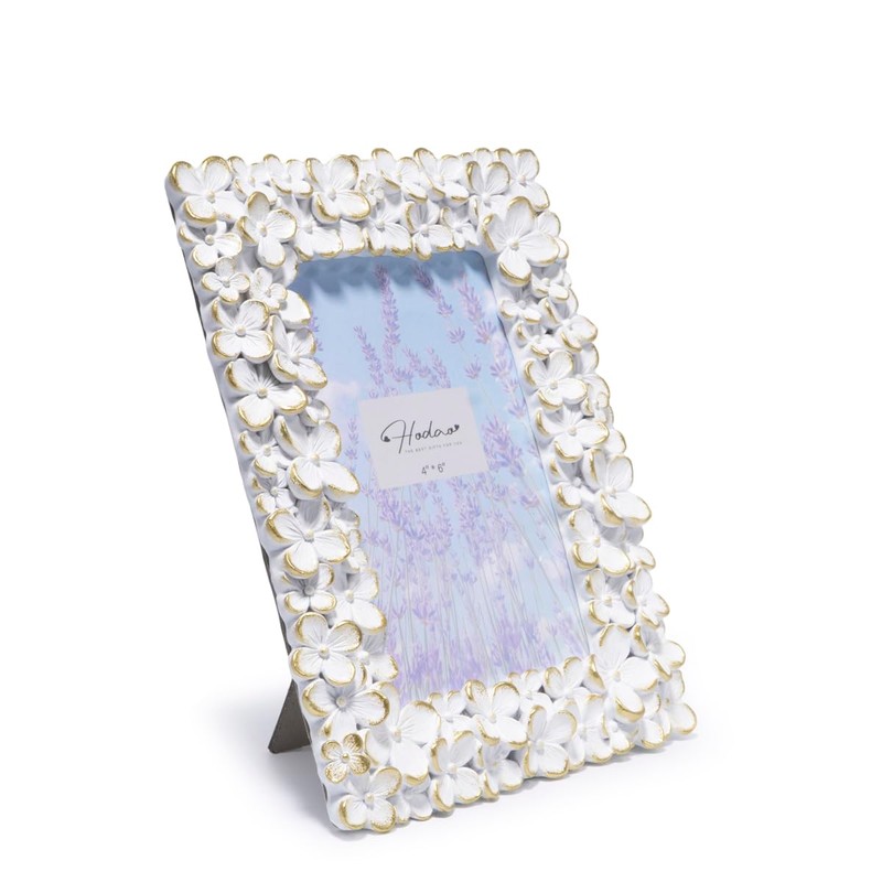 Hodao 4x6 3D Floral Photo Frame - Hand - Crafted Resin Picture Frame, Tabletop Decor for Home, Wedding, Valentine’s Day Gift & Photo Display (White - Square)