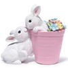 - Charming Bunny Design This set of 2 bunny figurines is designed with adorable details, featuring two playful white rabbits interacting with a pink flowerpot brimming with colorful blooms. Each sculpture measures 6 inches tall, 6.7 inches long, and 3.4 inches wide, making them an ideal size for adding a whimsical touch to your Easter and spring home décor.