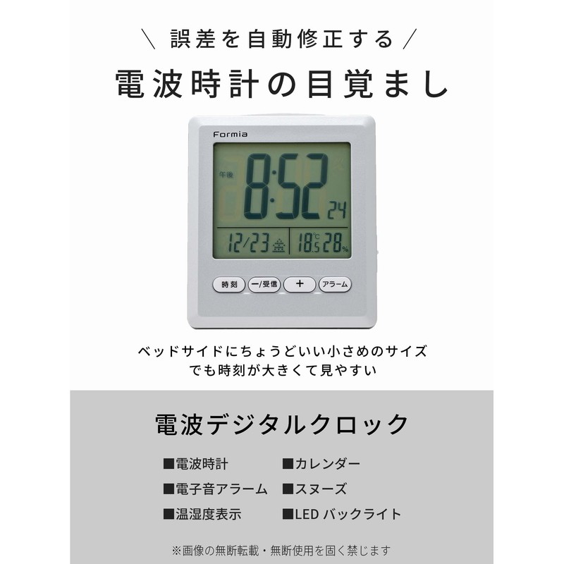 Hodogaya Electronics Sales Alarm Clock, Radio Control, Small, Digital, Snooze, Backlight, Silver