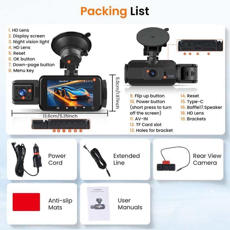 - ►【Loop recording/G-sensor/parking monitoring】When it detects sudden situations such as severe collisions and vibrations, the video recording is automatically locked and not overwritten by the loop recording. When the recording memory is full, the earliest recorded video is automatically deleted. Turn on the monitoring function while parking. When an object is detected by the car, the recorder automatically records and shoots to protect your car. (This function requires additional accessories)