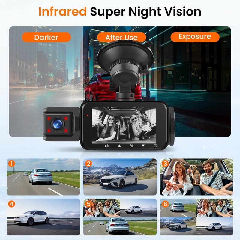 - ►【Super Night Vision & 150° Wide Angle】The exposure adjustment function of the Hodozzy 2K dash cam can capture details even in dark and bright environments, avoiding overexposure and ensuring safe driving. The built-in lens is equipped with a night vision function without light, which can clearly see faces. Its 150° ultra-wide angle lens covers a wide area and records important details across multiple lanes without missing anything.