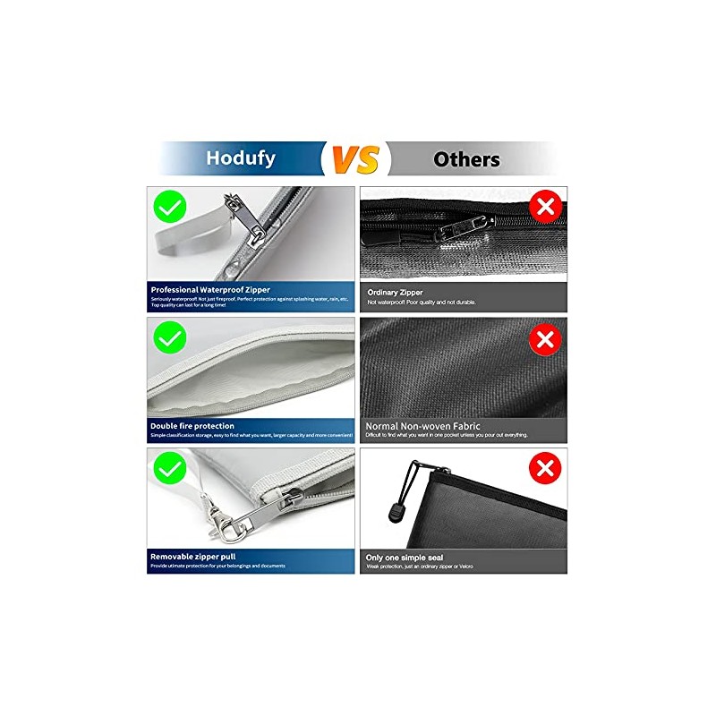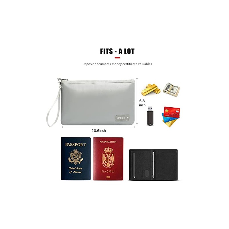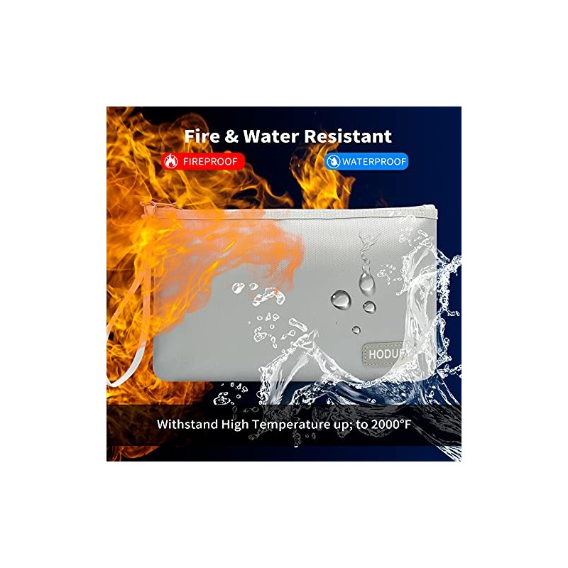 Hodufy Hodufy Fireproof Money Bag (2000), Fireproof Document Bags, Gray, A5 Size, Zipper Closure