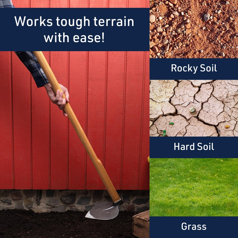 - VERSATILE GARDEN HOE - Whether you’re digging, aerating, weeding, or furrowing the soil for planting, this garden hoe for weeding has you covered. Our weed puller tool digs through tough terrain with ease, from grass to rocky or hard soil.