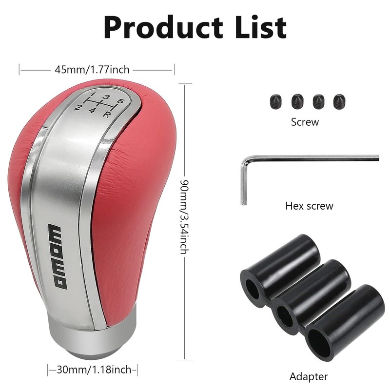 - High Quality Material The 5 speed gear knob is made of high quality leather and aluminum alloy, which is comfortable to hold and sturdy.