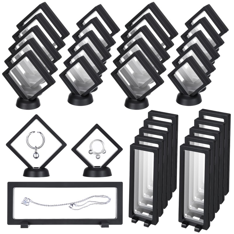 Hoemwarm Hoemwarm 30 Pack 3D Floating Display Stand Floating Frame Display Case Coin Display Holder with Base Transparent PE Jewelry Storage Box Black Freeze Seal Frame for Jewelry,Specimen,Medallions(Black)