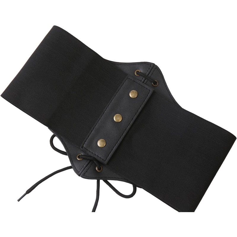 Hoerev Women Girls Elastic Wide Band Elastic Tied Waspie Corset Waist Belt,Black with copper button,XS