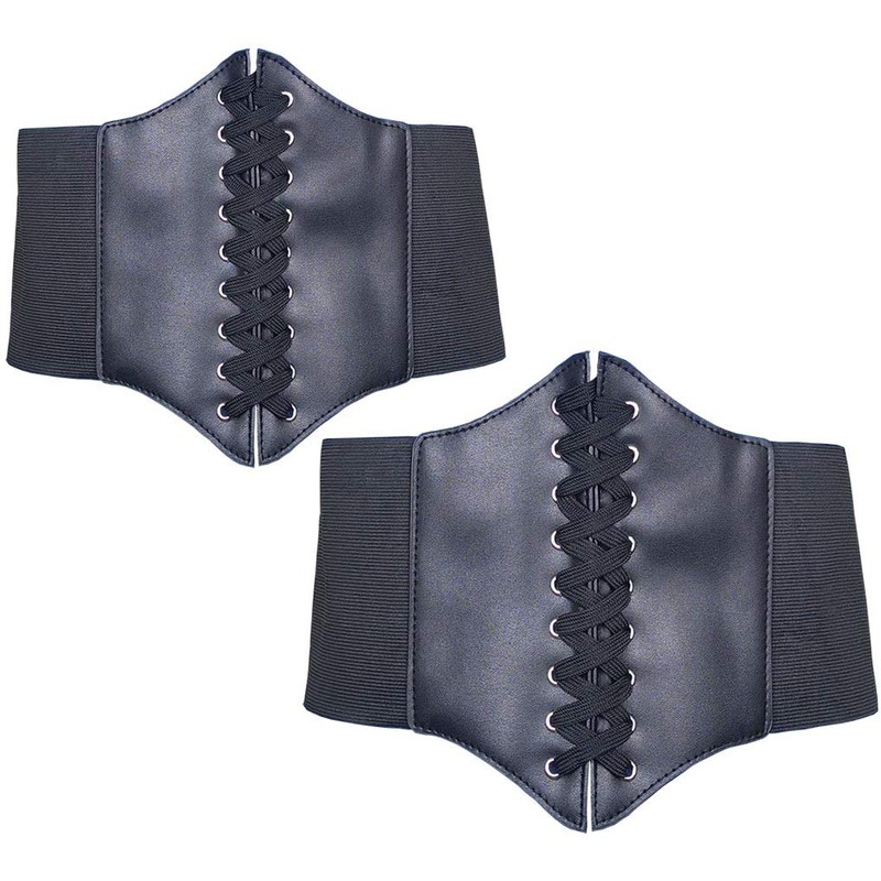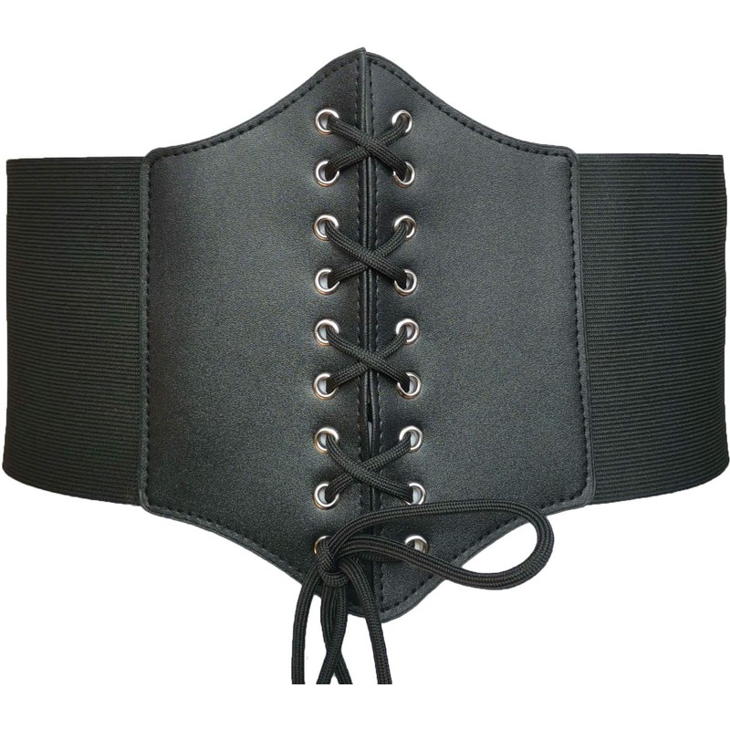 Hoerev Women's Girls’ Wide Elastic Belt Elastic Waspie Corset with Ties Waist Belt Bustiers Corsets - black, size: m
