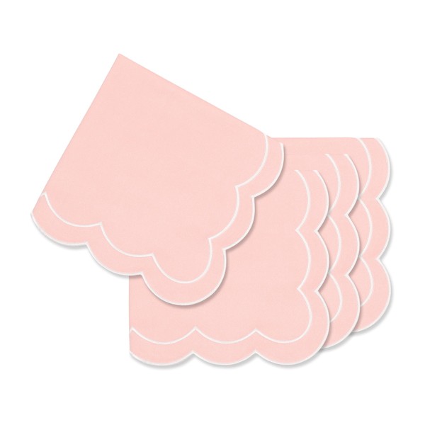 - Refined Coastal Design: With intricate white embroidery on a blush pink base, complemented by a scalloped border, this napkin brings a fresh, coastal charm to your dining setup. The white reverse side adds to its clean, elegant appeal.