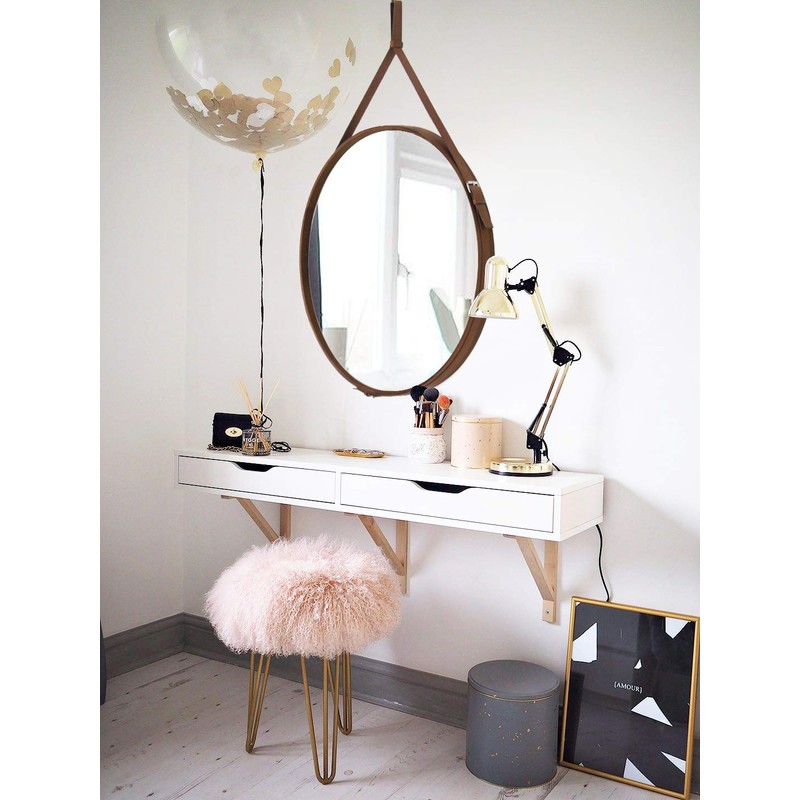 • Looks great and elegant, pretty easy to hang up and you can adjust the length with the leather straps.The mirror with silver hardware hook has a soft backing so as not to scratch the wall. 3 size options are available promising a perfect fit for your space.