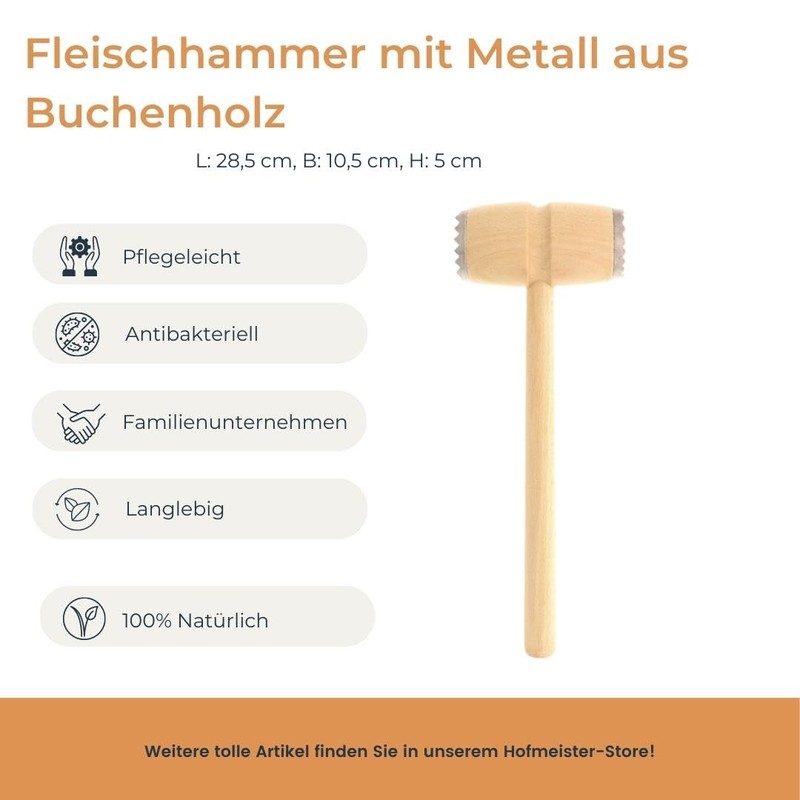 HOFMEISTER® Meat Hammer with Metal, Natural Product, 28.5 cm, Plastic-Free, Durable Meat Tenderiser Knocks Every Cutter, Soft, Solid Meat Tenderiser, Schnitzel Tenderiser