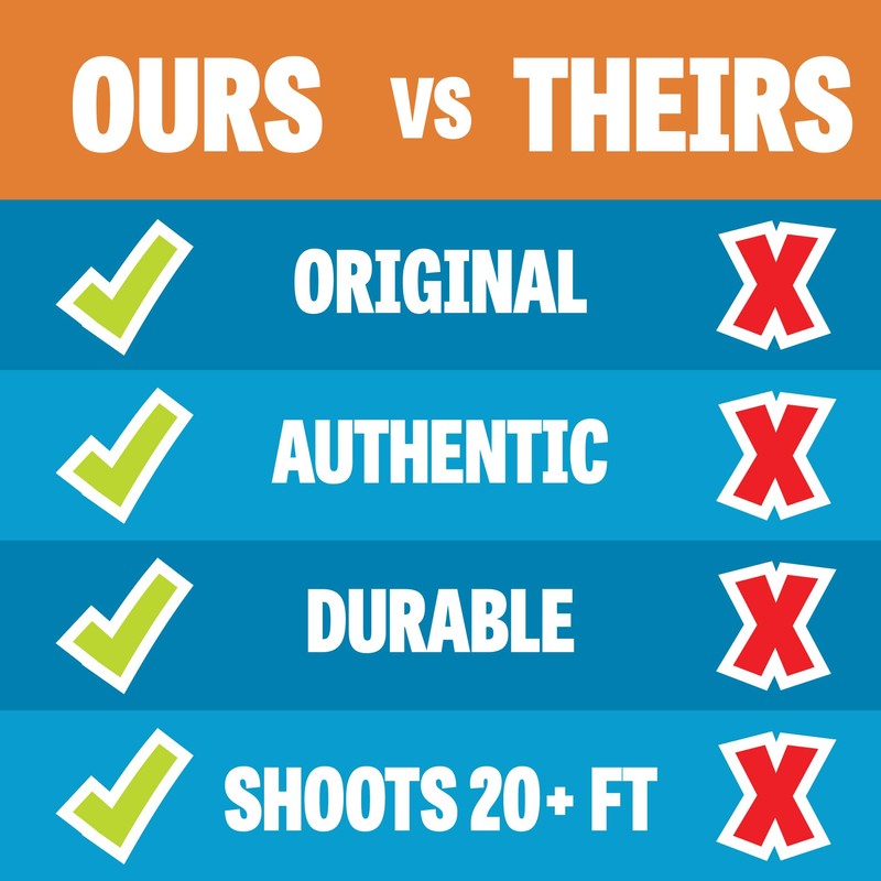 - Includes 6 foam balls. Just load them into the popper and squeeze!