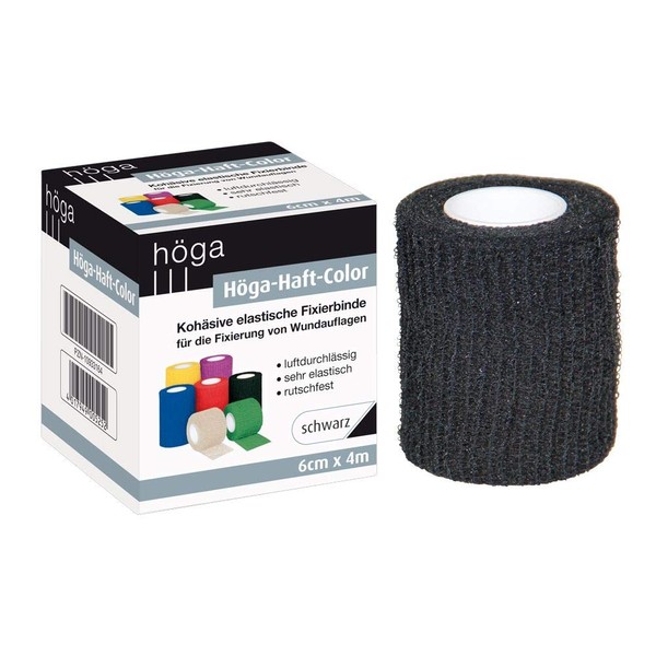 Höga -Haft-Color Black 6 cm x 4 m Stretched Cohesive Elastic Fixation Bandage Pack of 2