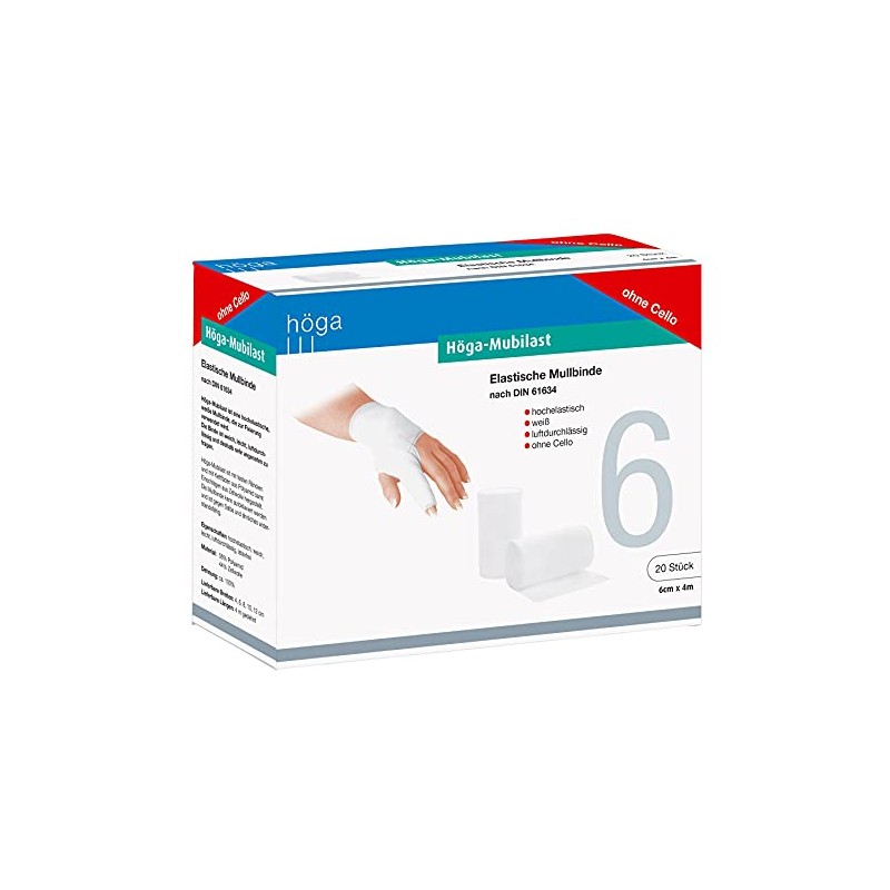 HÖGA MUBILAST Elastic Elastic Gauze Bandage 6 cm x 4 m, Pack of 20
